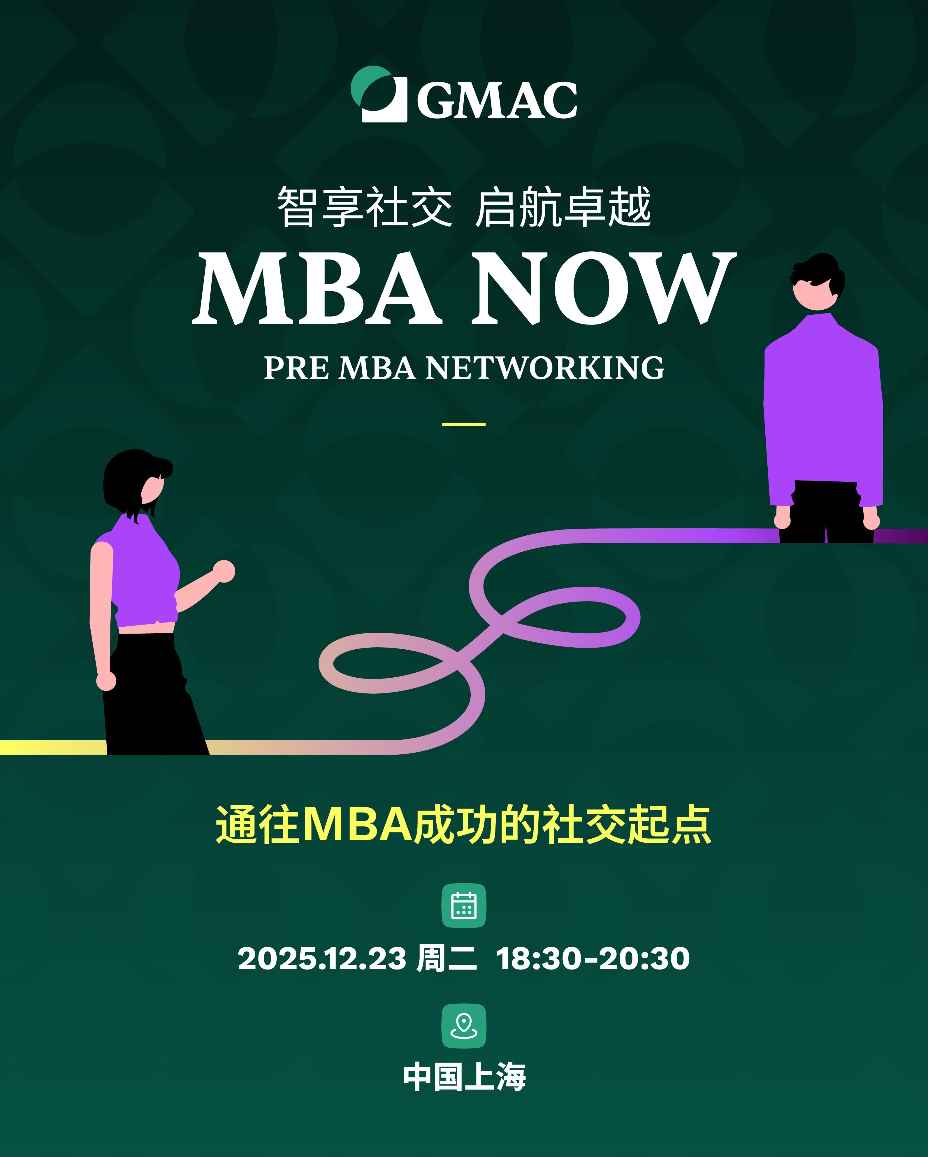 GMAC诚挚邀请您参与 GMAC Pre MBA Community于上海举办的 Pre-MBA Networking活动,这场专为MBA申请者量身打造的线下活动,将为您带来两大价值体验,着力解决您在 MBA 申请与未来职业发展的核心困惑: